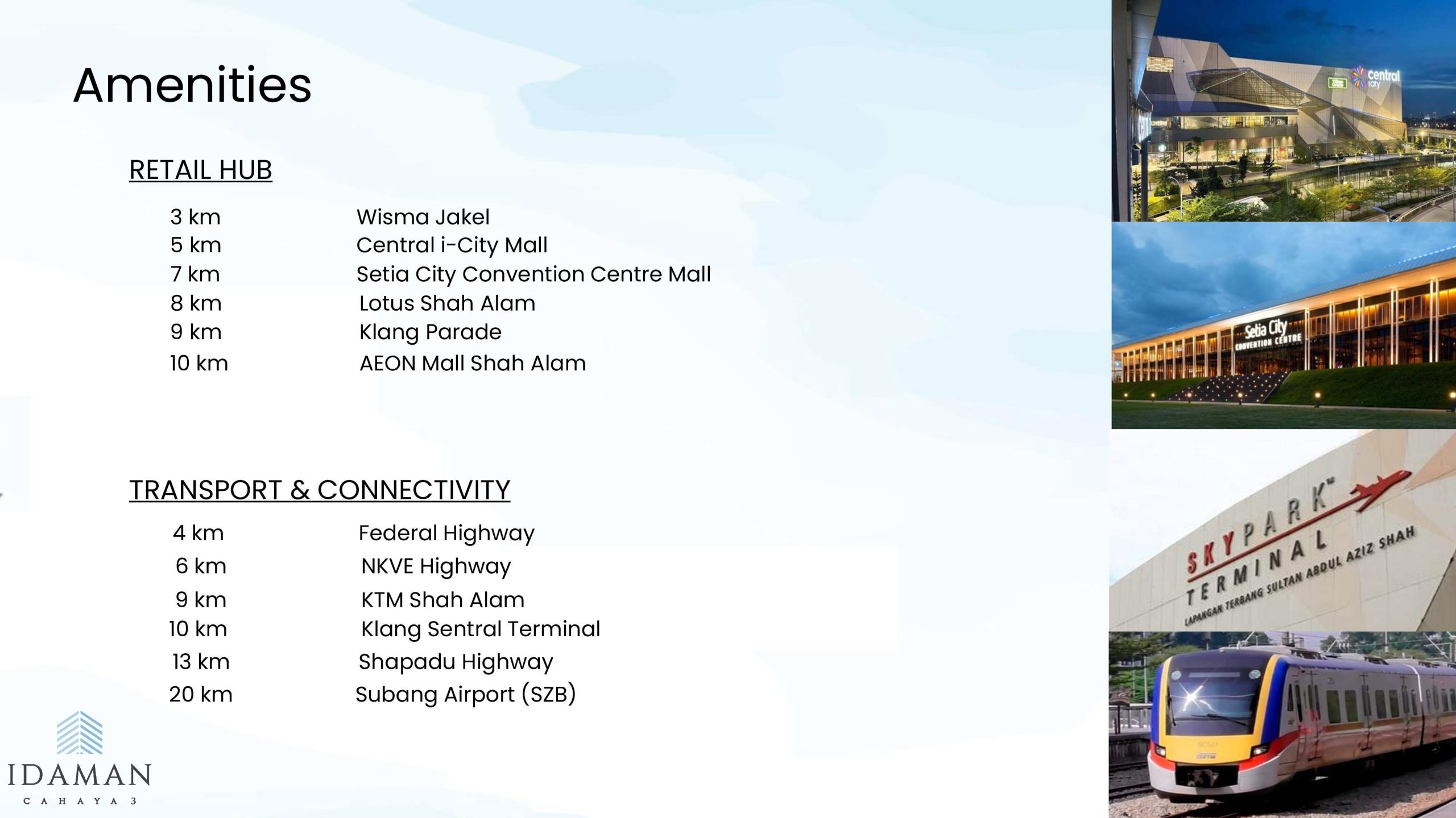  Fasiliti : Dewan Serbaguna, gymnasium, surau, dan taman permainan