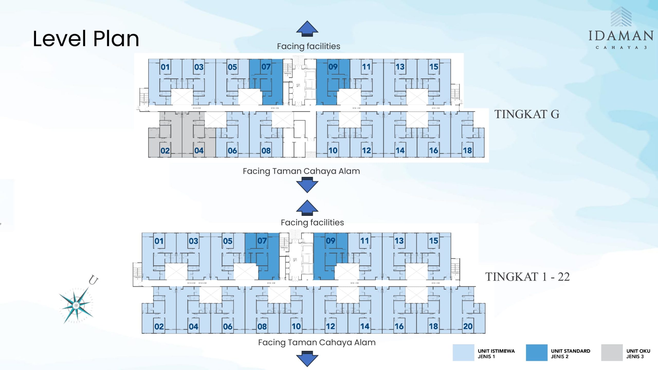  Jumlah unit : 413 unit (1 blok sahaja, 22 tingkat )